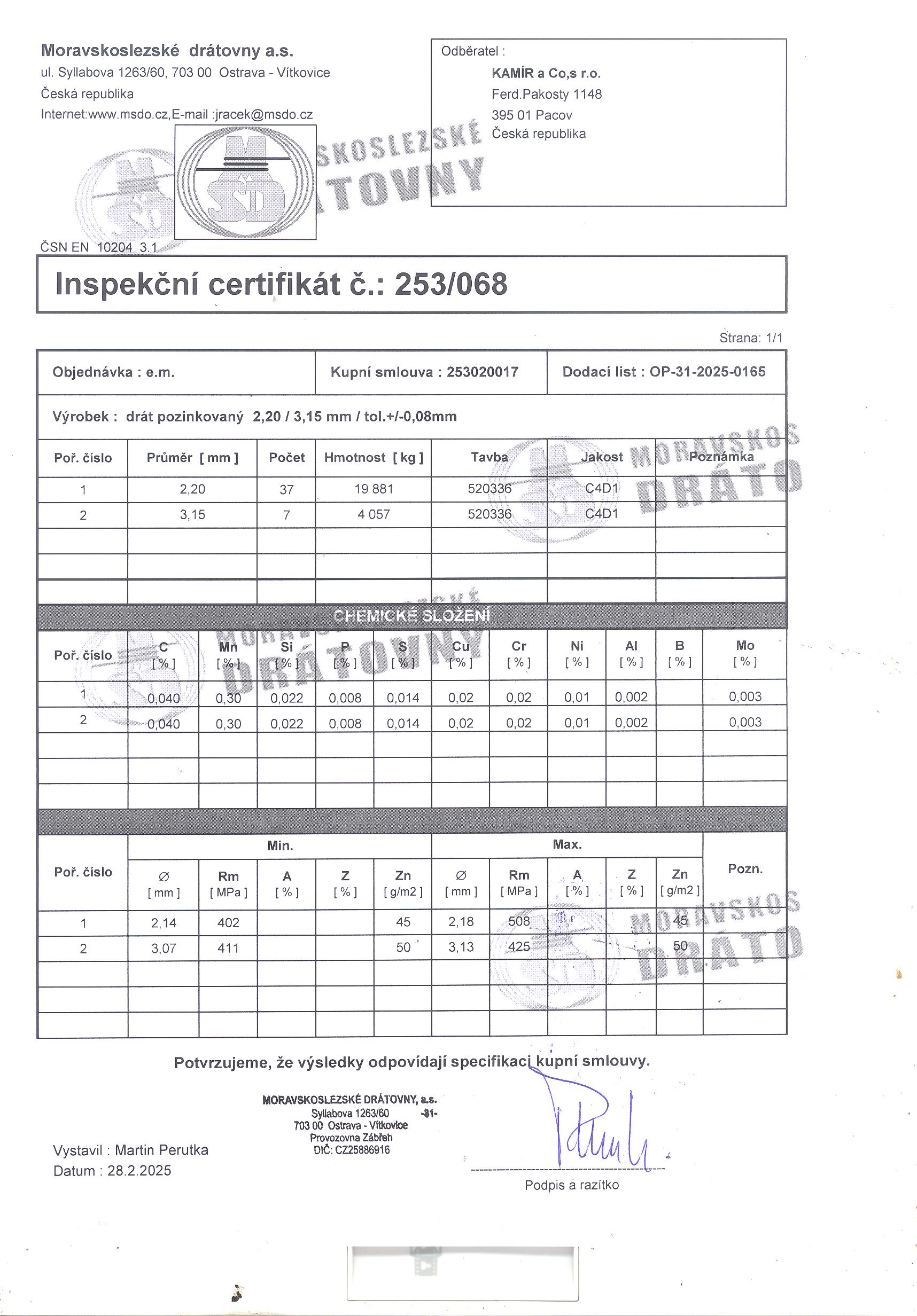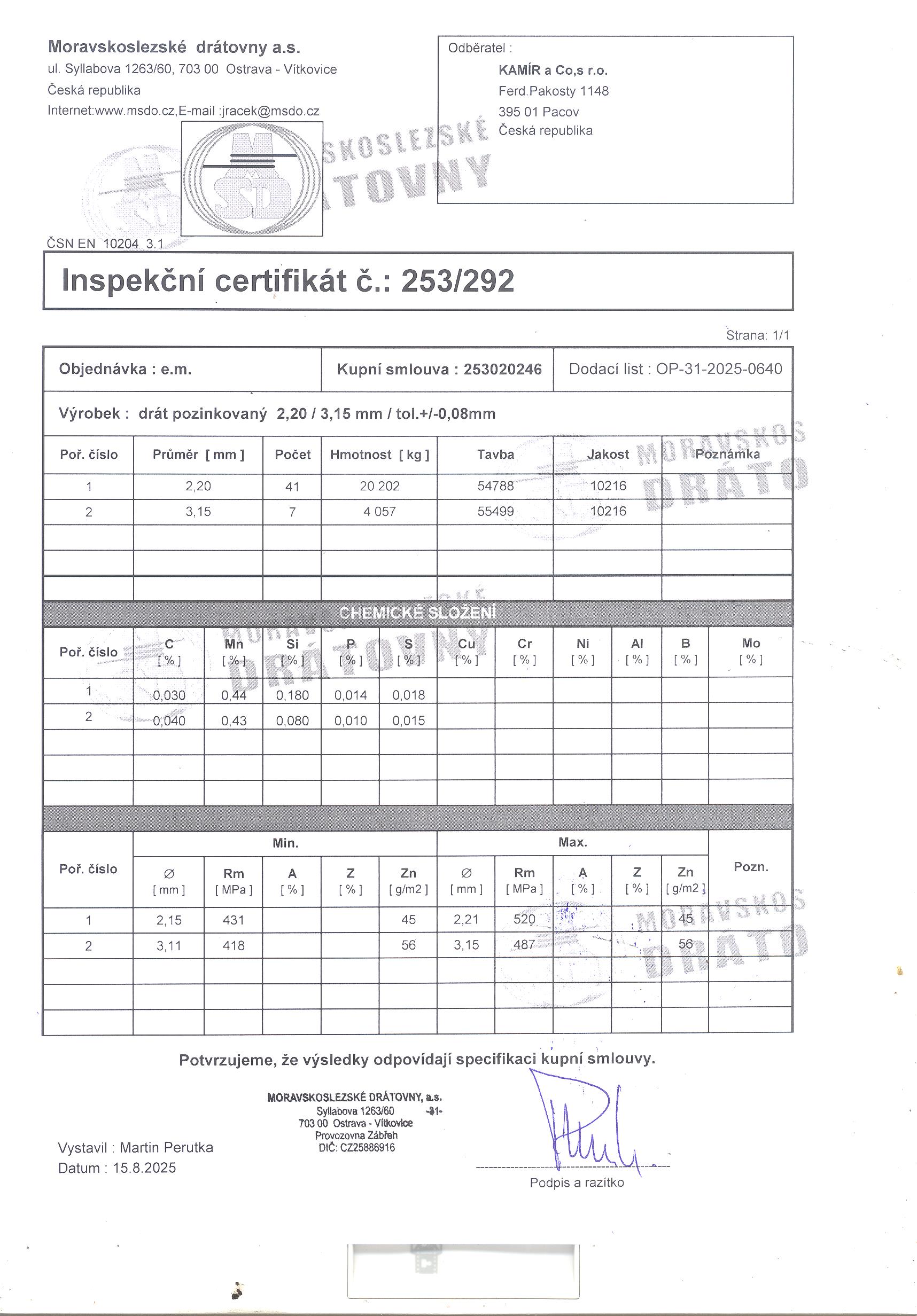| Průměr drátu | 3,15 mm |