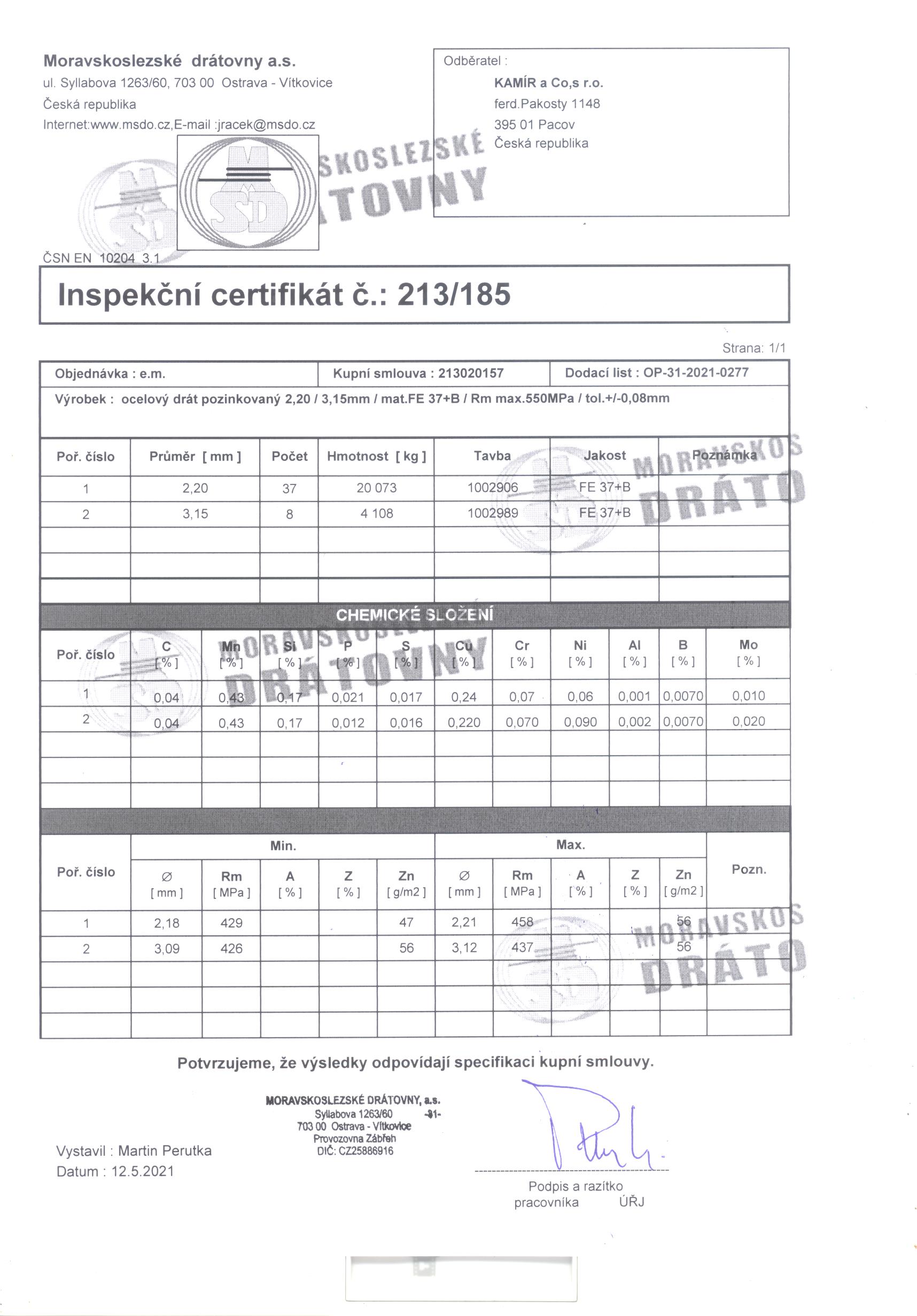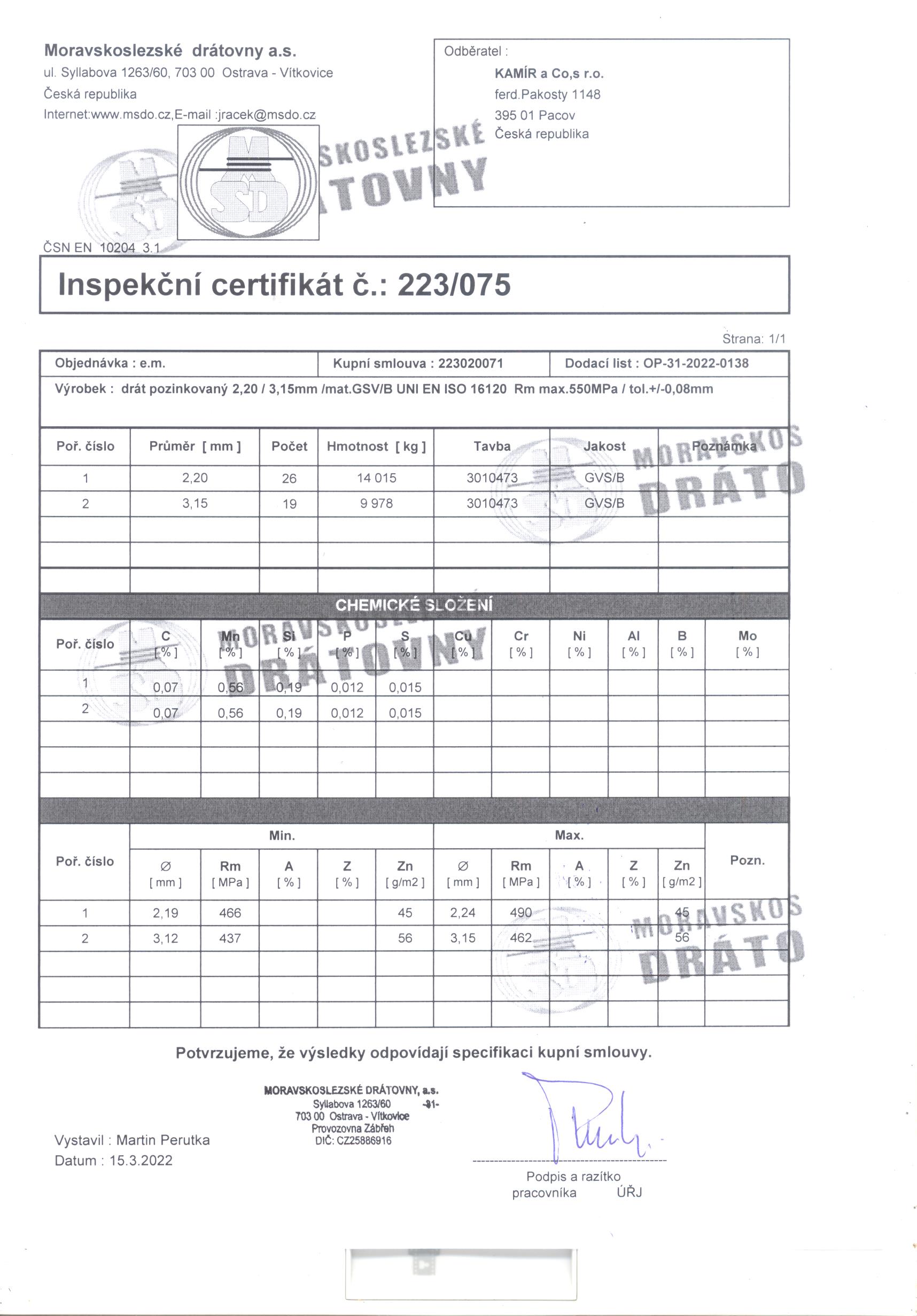 | Průměr drátu | 3,5 mm |