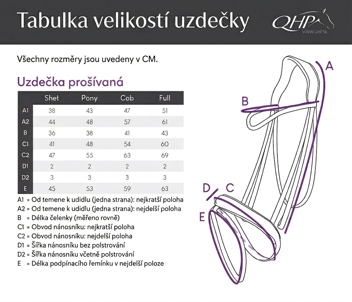 | Velikost uzdeček | Full (L) |