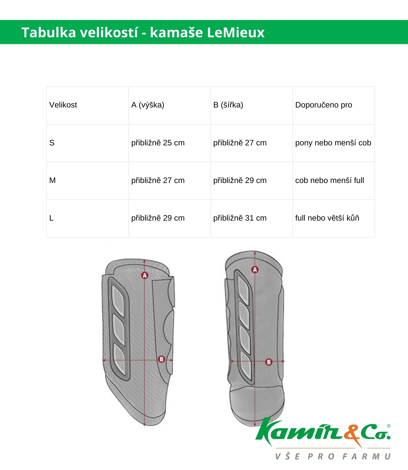 | Velikost kamaší a chráničů | Cob (M), Cob+ |