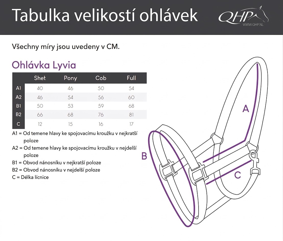 Praktické zapínání na karabinu umožňuje snadné a rychlé nasazování. Ohlávka je vyrobena z pevného polypropylenu s kováním z odolného železa.