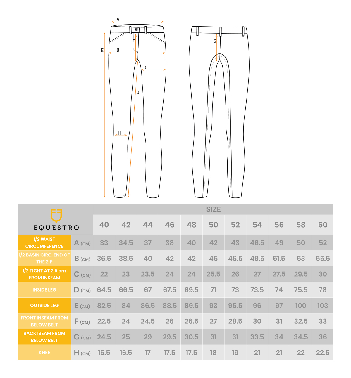 Klasické jezdecké bavlněné rajtky Equestro v tmavě modré barvě. Rajtky mají zesílený materiál v oblasti kolenou a nohavice zakončené elastickou vsadkou.